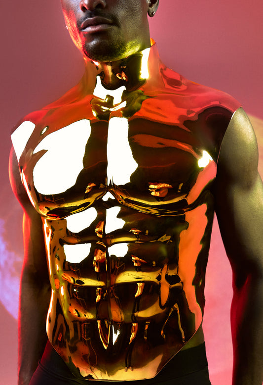 LACQUERED CHROME ACRYLIC ANATOMICAL BREASTPLATE IN GOLD