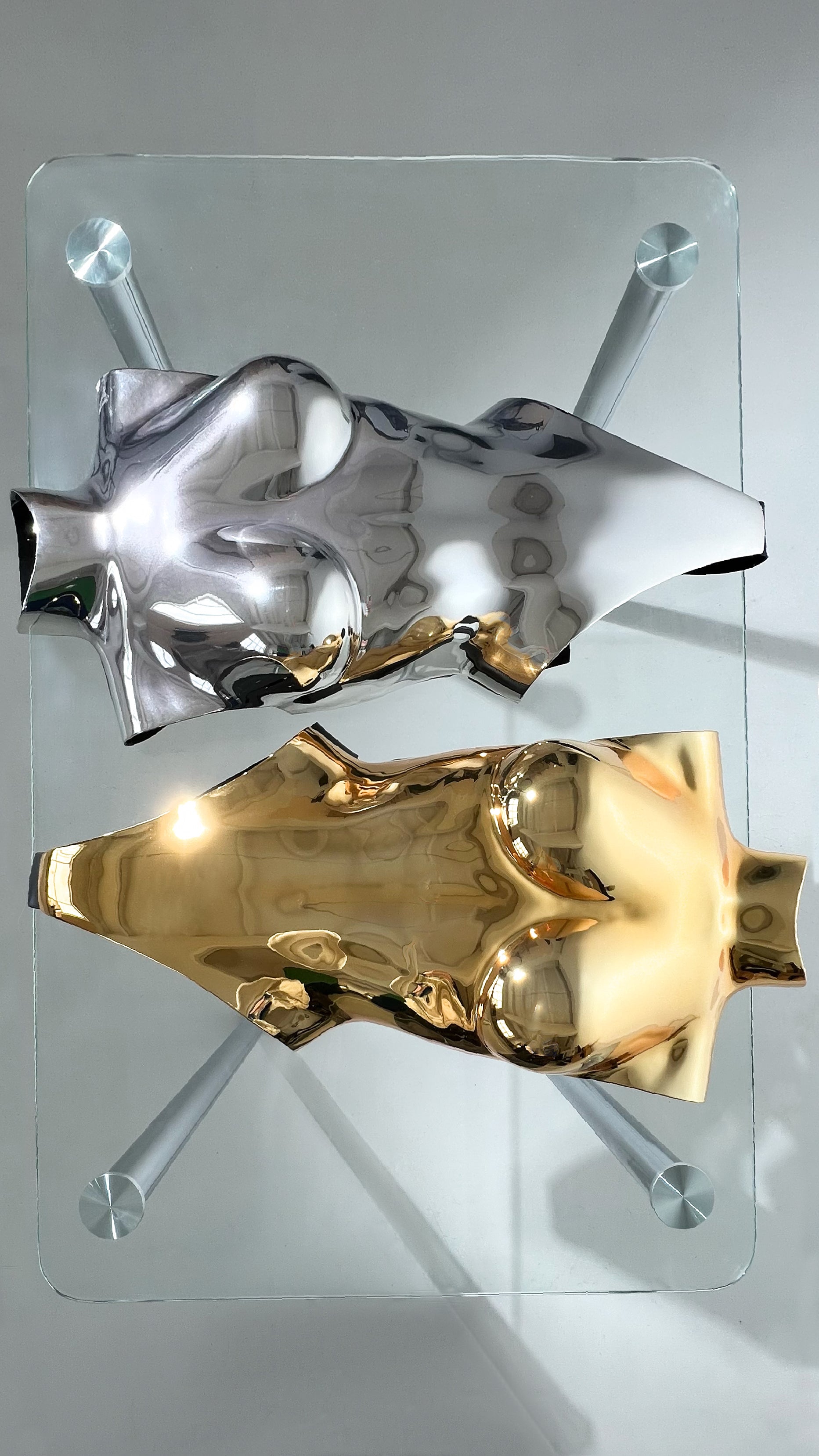 RUNWAY-READY CHROME ACRYLIC BREASTPLATE WITH LACQUERED REFLECTIVE FINISH
