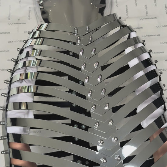 THIS MUSEUM-GRADE ANATOMICAL BREASTPLATE IS A UNIQUE FUSION OF ART AND DESIGN, FASHIONED FROM PREMIUM LACQUERED CHROME ACRYLIC